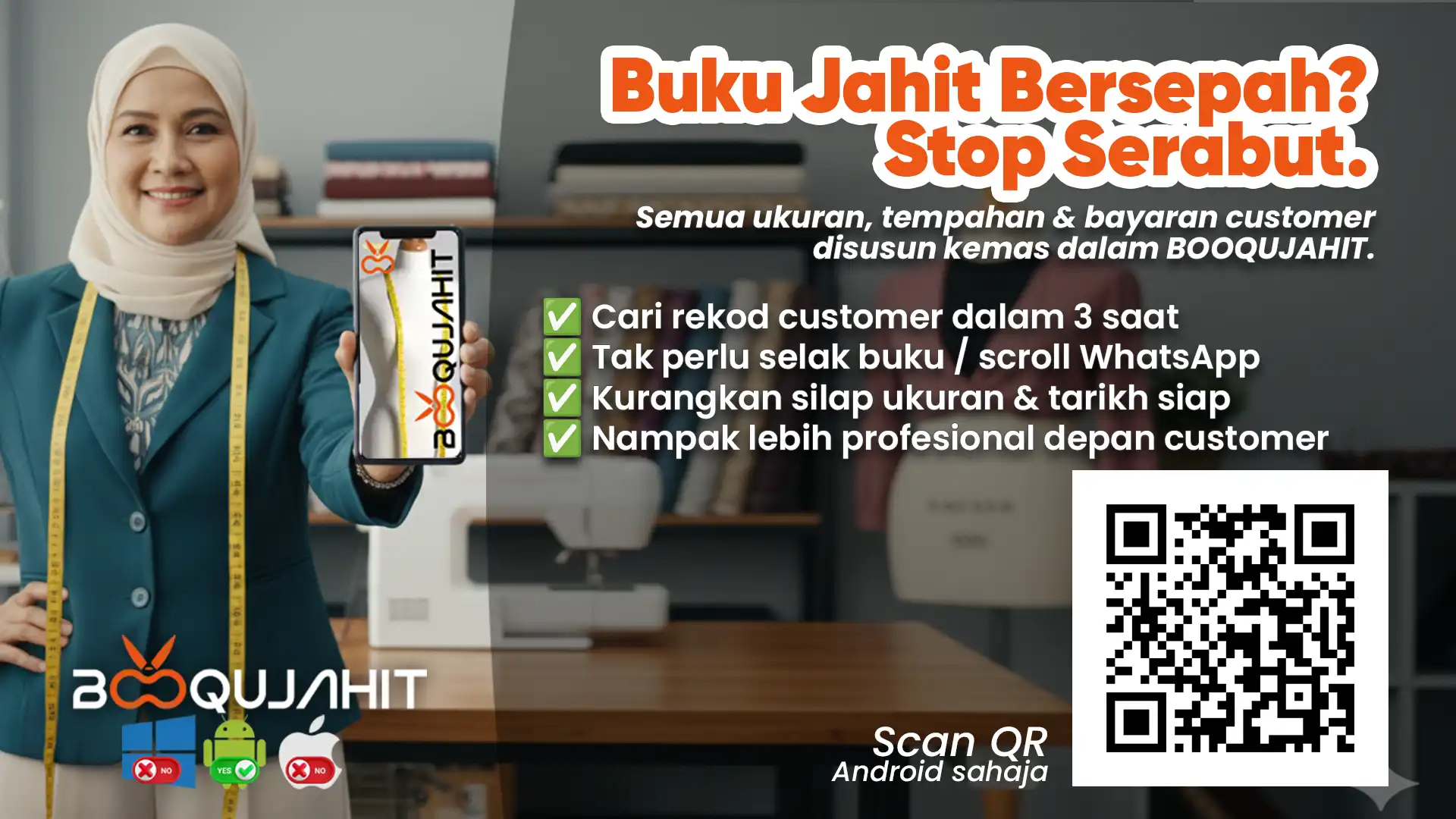 Dapatkan Aplikasi Buku Jahit Digital BOOQUJAHIT versi yang terkini: Cara Tukang Jahit Malaysia Simpan Ukuran & Tempahan Tanpa Serabut (Versi Digital).